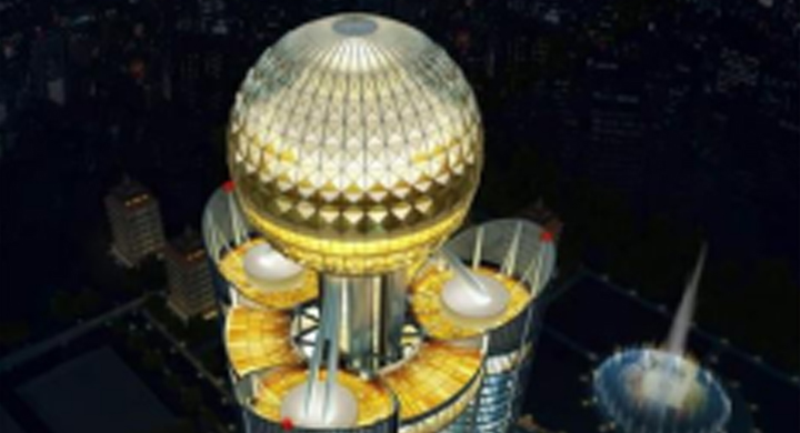 “空中華西村”( 華西增地空中大樓 ),地處“天下第一村”--江蘇省江陰市華西村,大樓高度為328米,地上72層,地下2層,投資15億元。建筑采用“塔”、“竹”相結(jié)合的造型設(shè)計(jì),總建筑面積達(dá)21萬m2。是由中華第一村投資建設(shè)的中國第八、世界農(nóng)村第一高樓,定位于超五星級酒店。