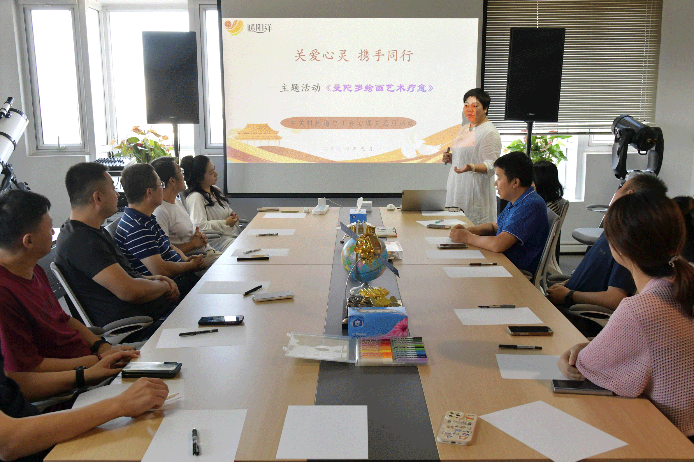 為促進職工心理健康,幫助職工有效緩解在工作、生活中的壓力,亞洲衛星公司工會帶領員工積極參與中關村街道總工會心理關愛月活動,總工會特邀請“暖陽洋心理咨詢室”的心理老師,走進亞衛通,展開專業心理健康活動 —— “曼陀羅繪畫藝術療愈”。